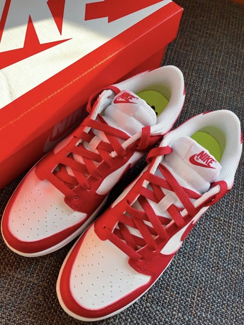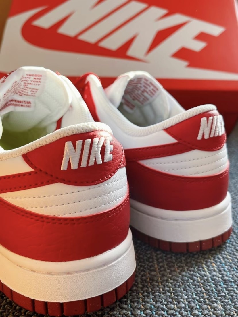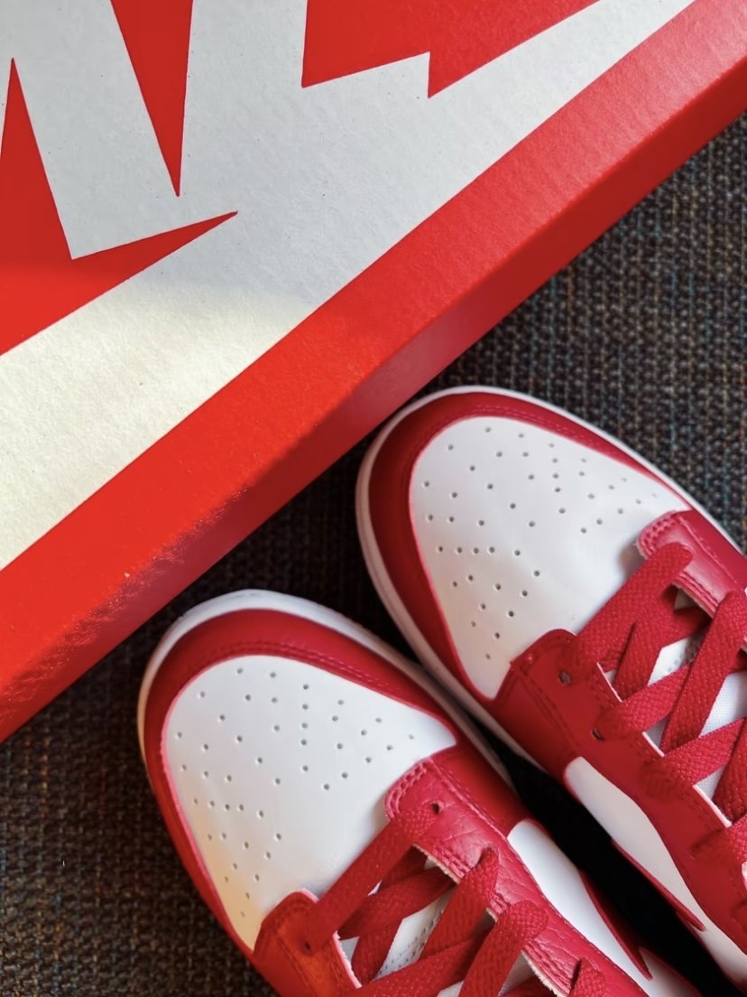 Double white and red color Dunk Low.