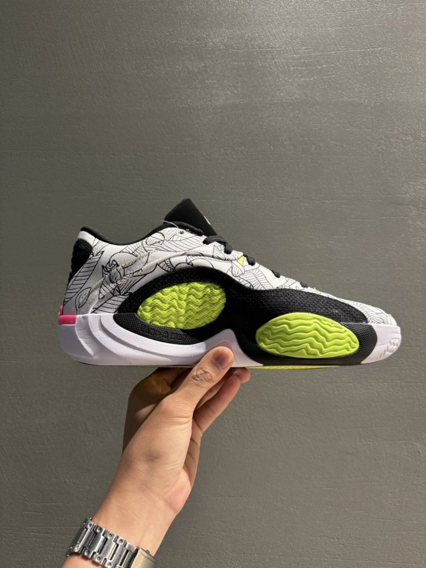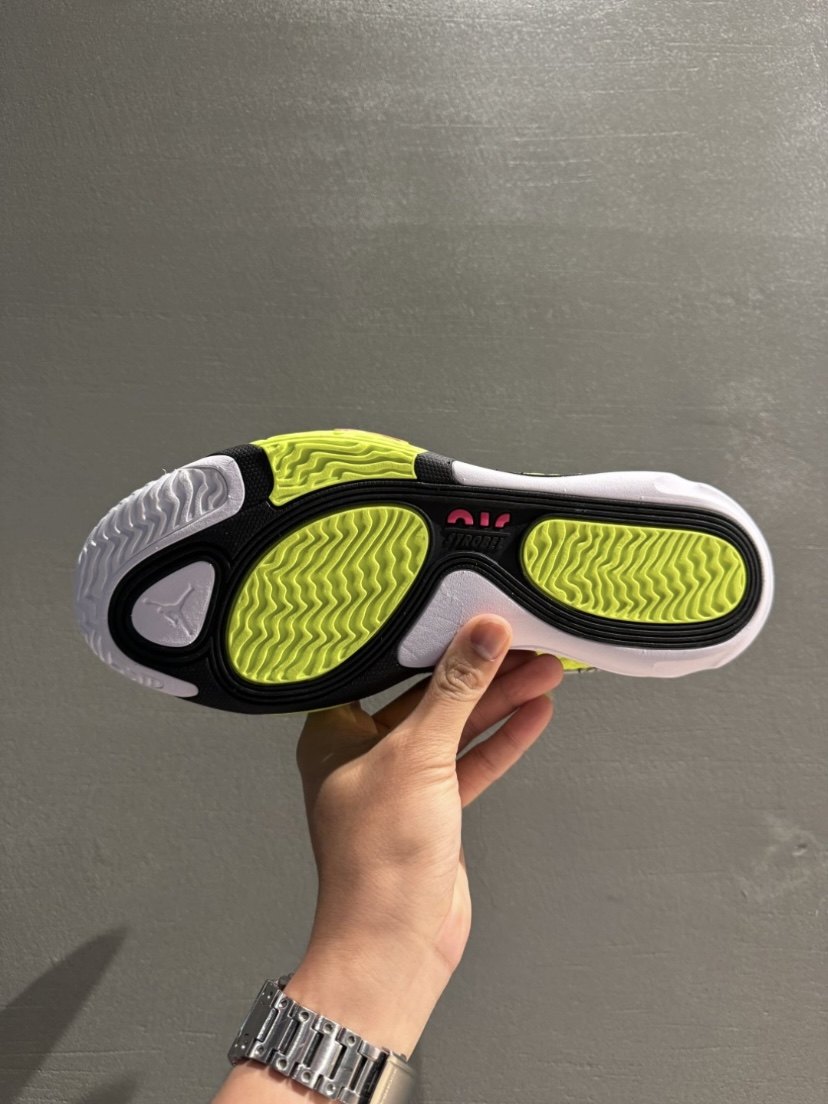 The cool fluorescent green color combination is really eye-catching! The upper is made of large-area fabric splicing, which is breathable and comfortable, and has good torsion resistance! sole