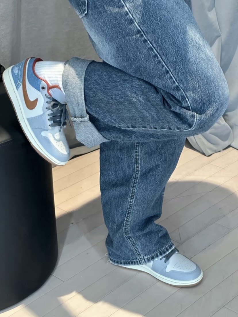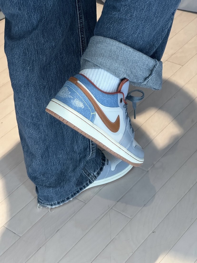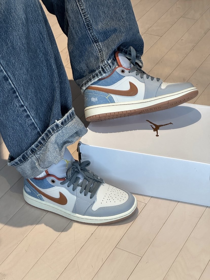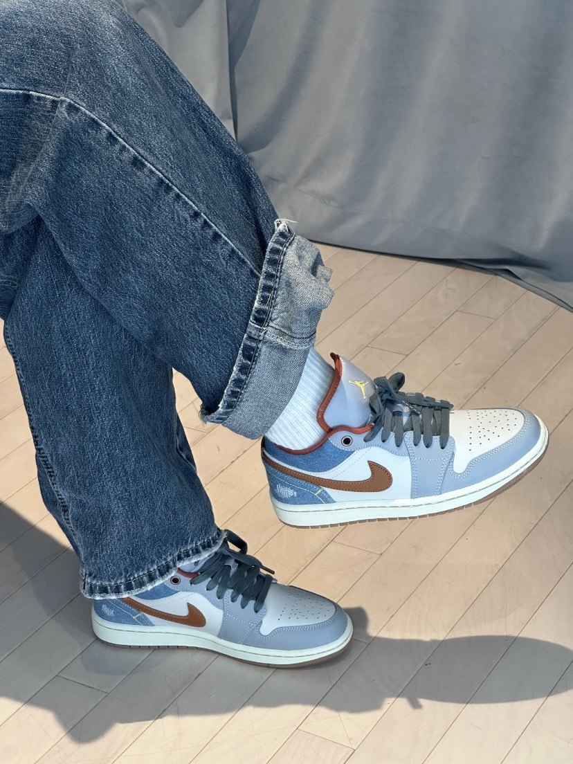 + Follow Emman Jinon date 2024-03-18 17:58:42 Denim splicing retro style AJ1 women's model Wear SWHOOS with workwear-style denim stitching To brown LOGO and raw rubber outsole The melon heel denim blue splicing design has a retro feel 23 0 Comment Please Sign in to comment