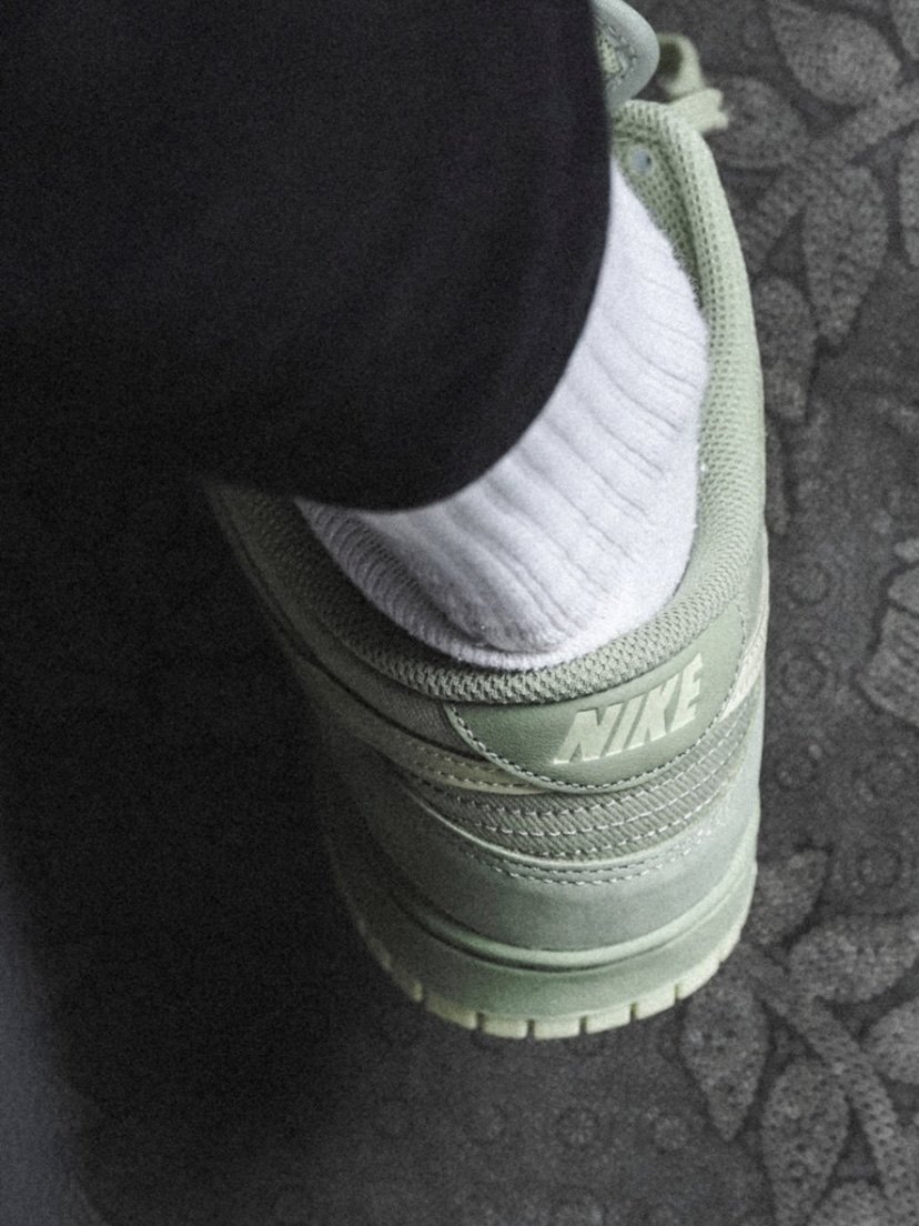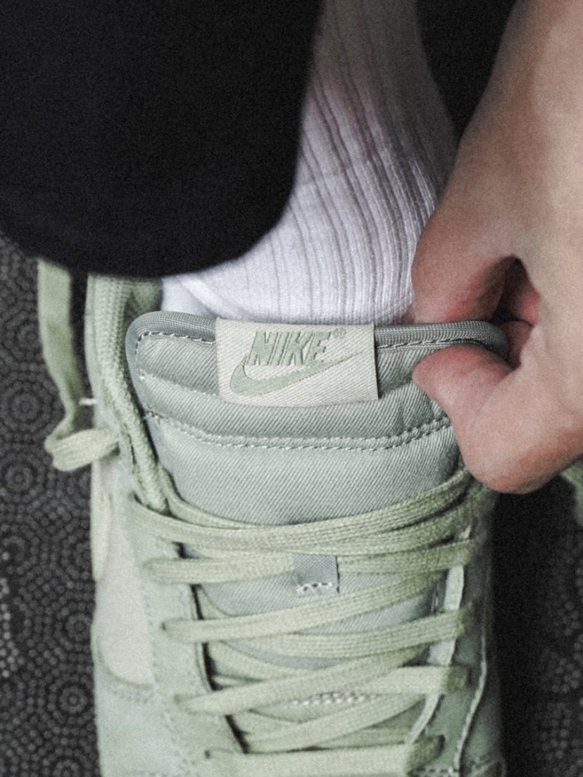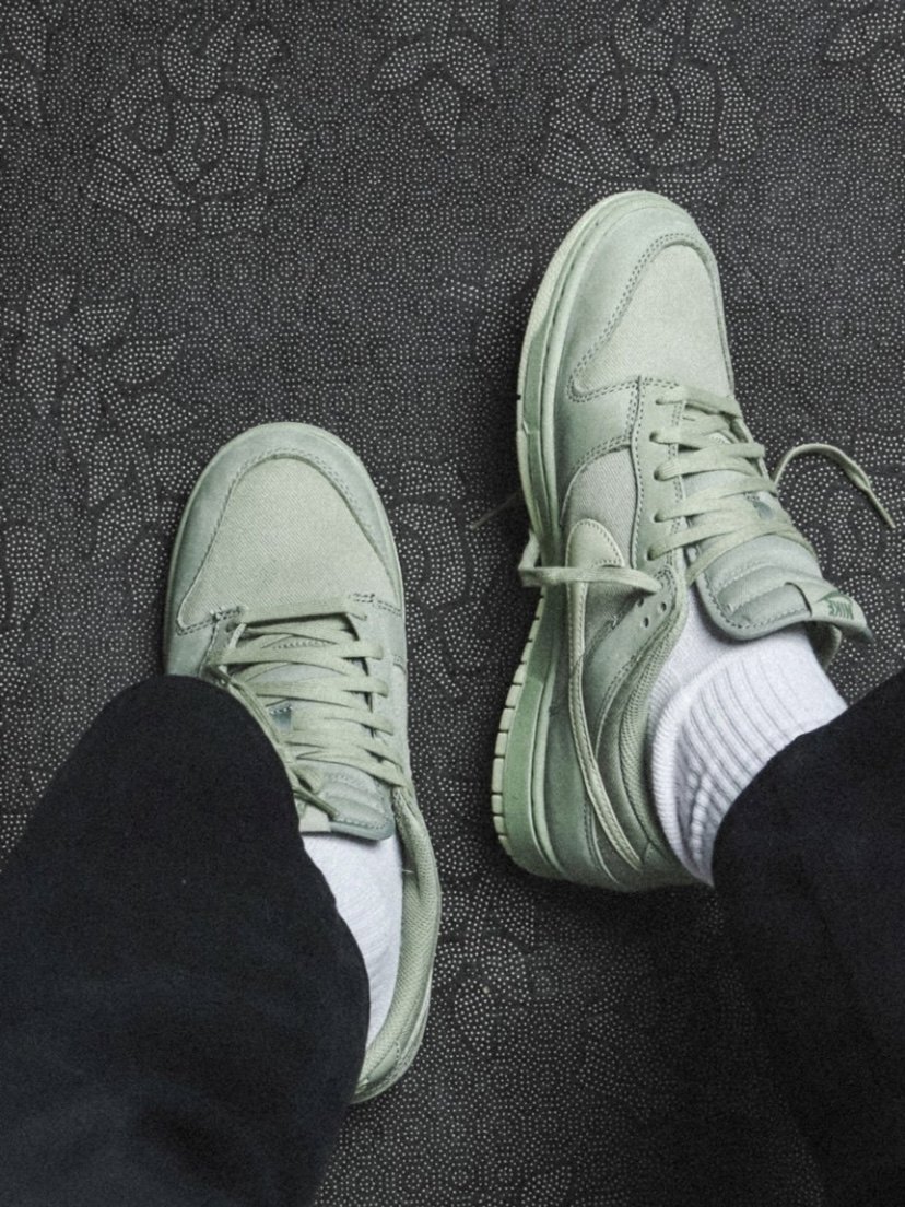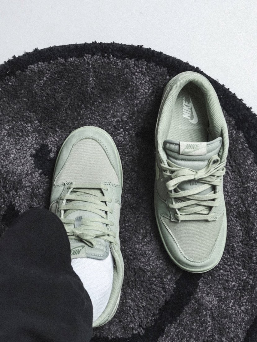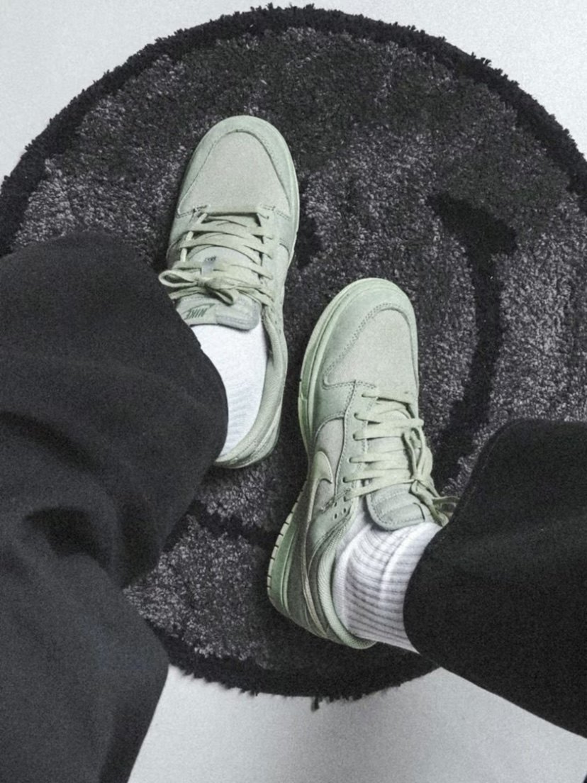 The appearance design of the shoe is a low-cut Dunk shoe. The overall color combination is green and light green, which is very eye-catching in the outfit. The upper made of fabric and nubuck leather is also very textured. It just feels average when worn on the feet, but the green color looks pretty white in the outfit.
