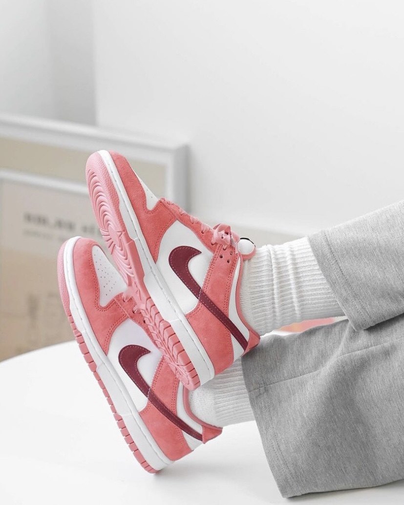 In terms of color and texture, the upper uses a large area of pink suede, which is quite comfortable to the touch. It also has a burgundy swoosh, which adds a retro feel. Wouldn’t it be very appropriate to wear it during the New Year and Valentine’s Day?