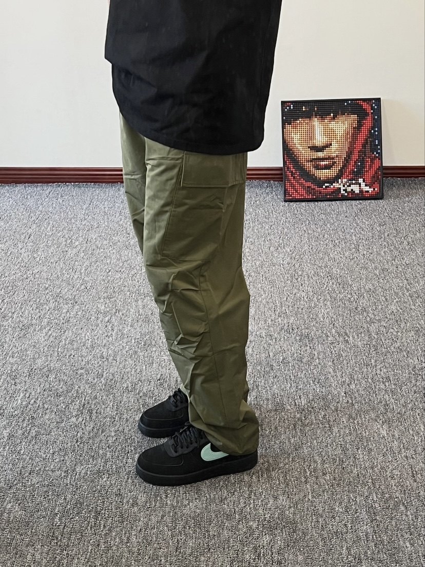 The trouser legs also adopt a split design