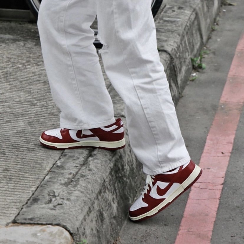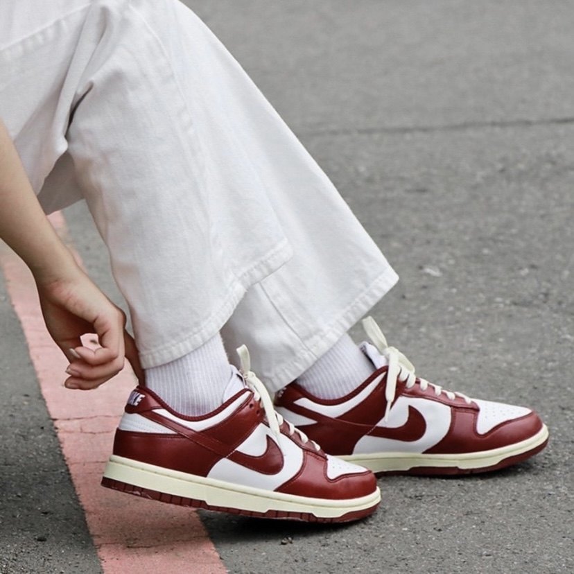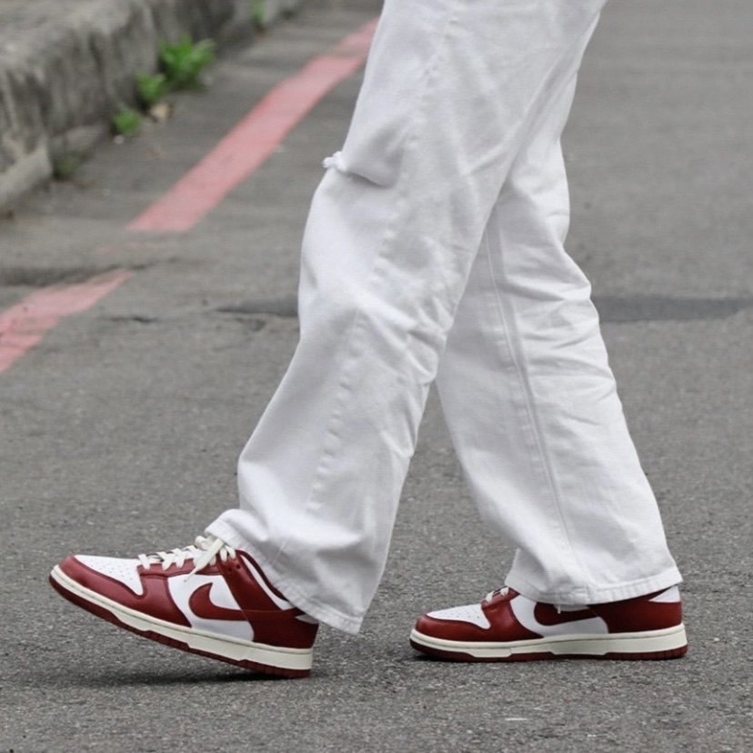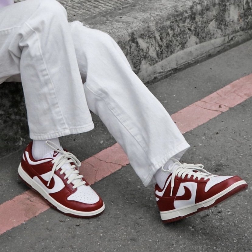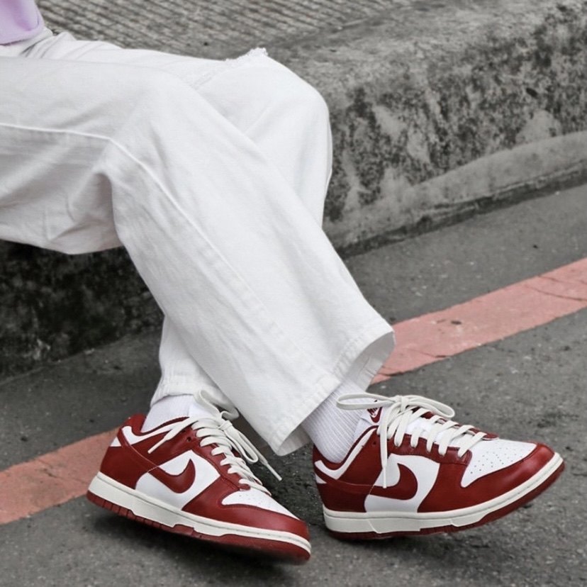This is a pair of low-cut Dunk with a strong retro feel. The shoes use retro burgundy and white as the upper color, and the midsole is beige.