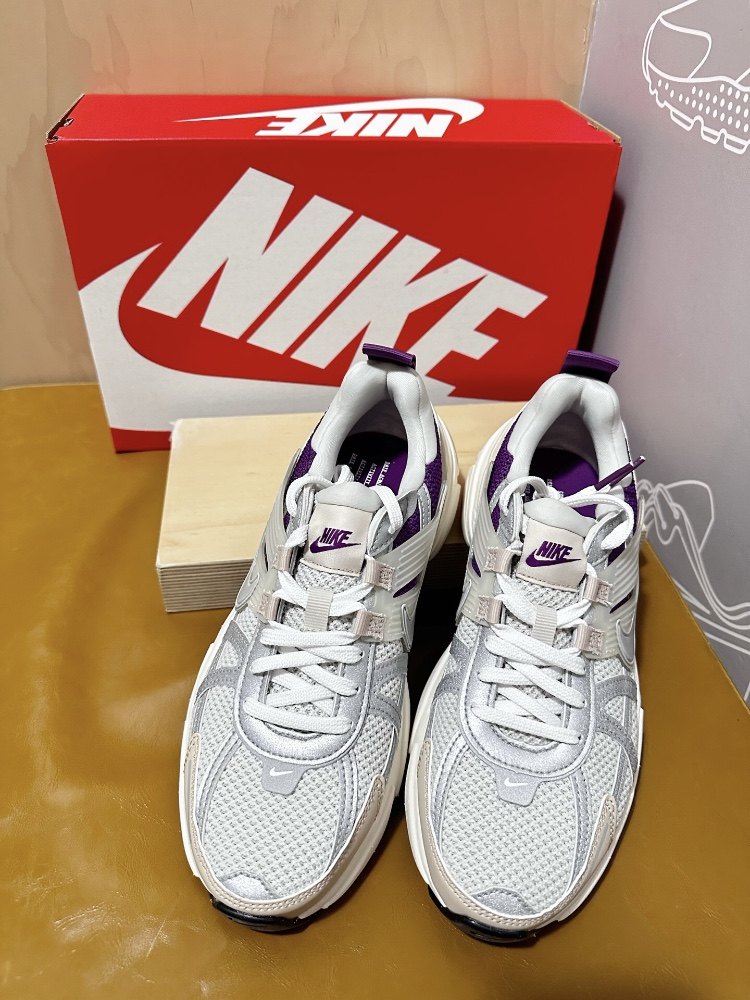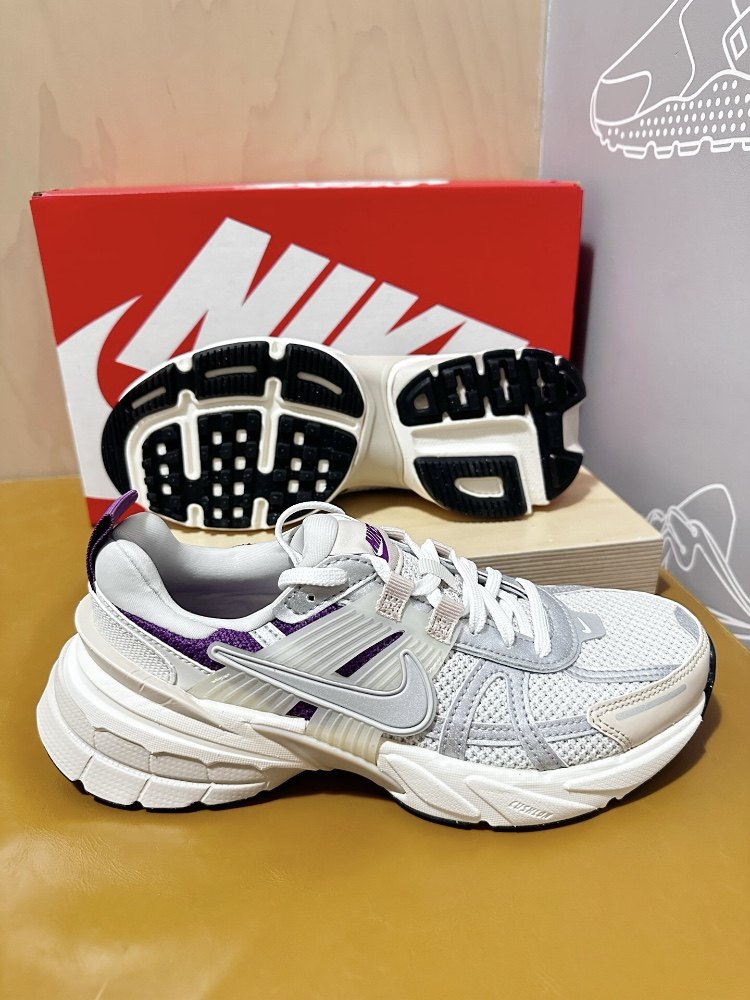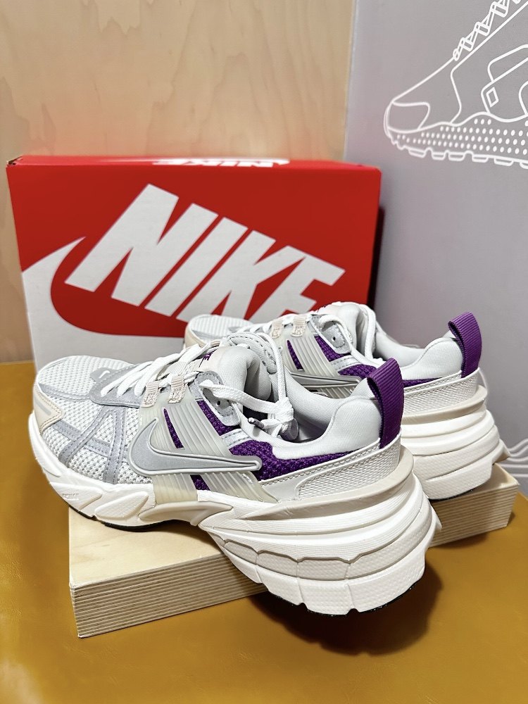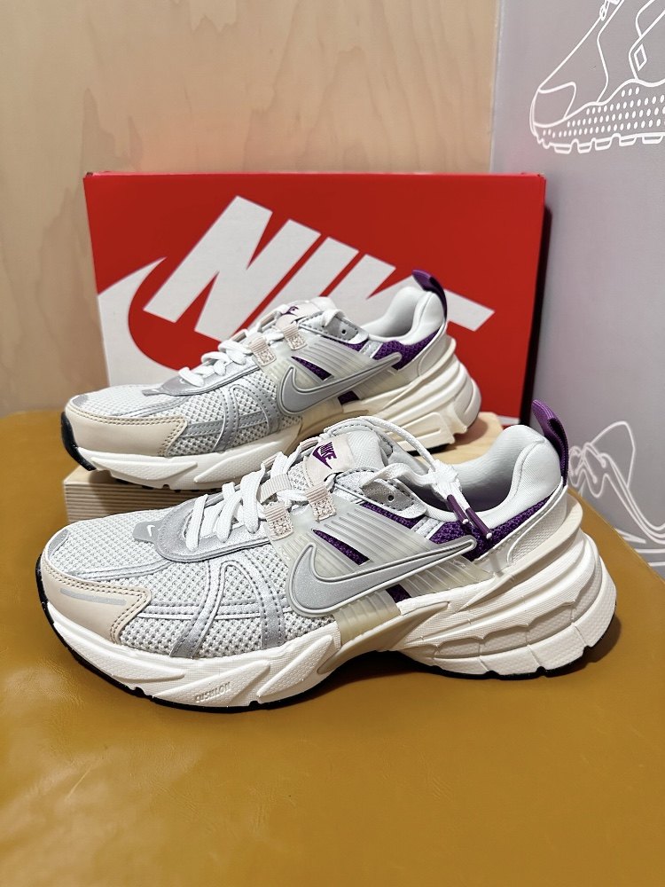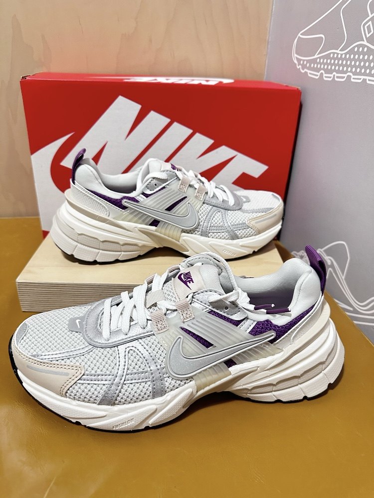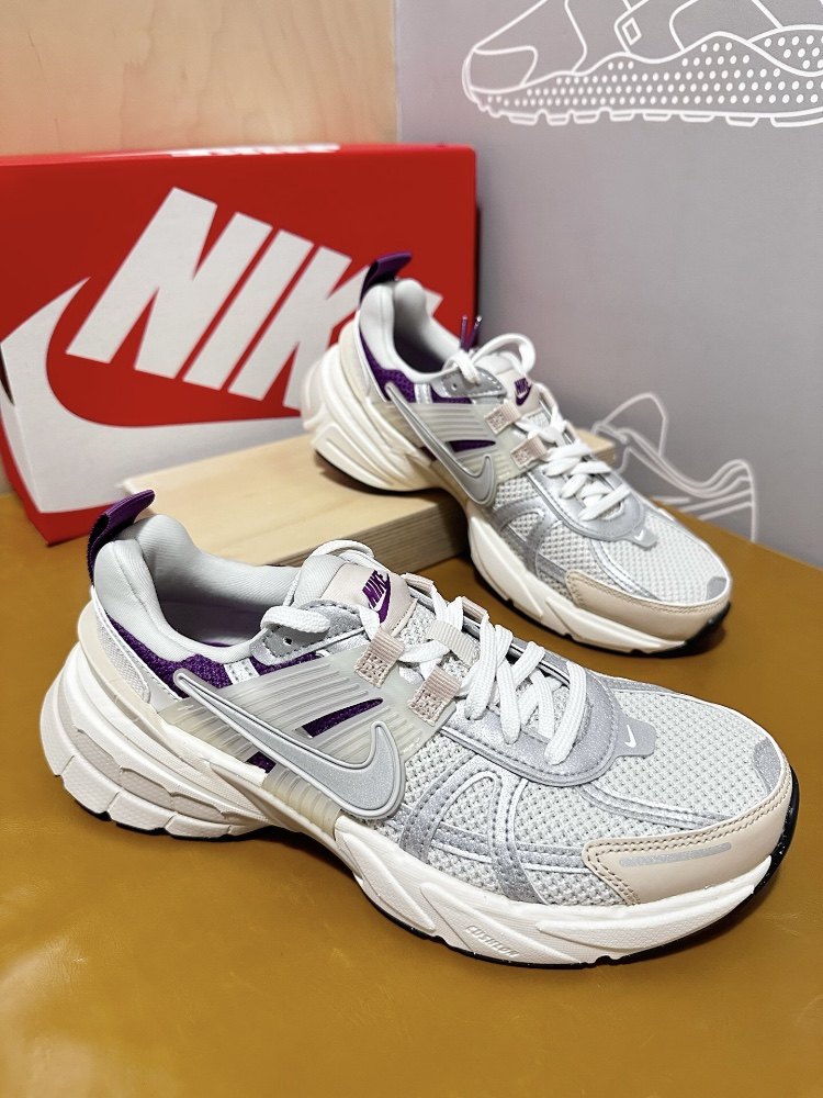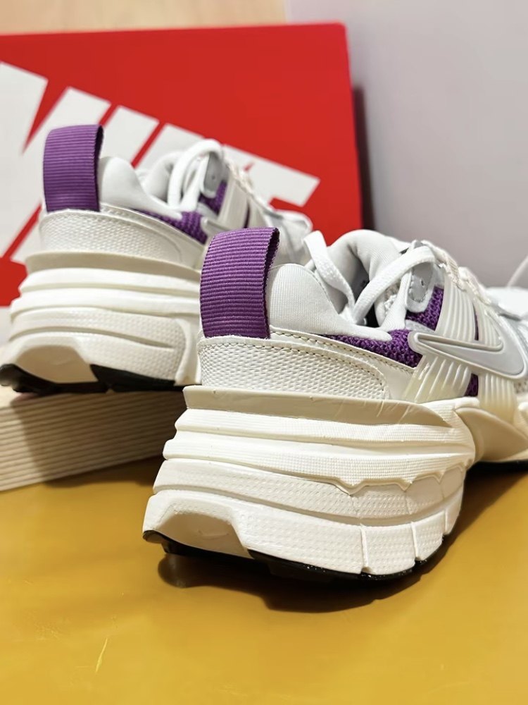 Nike v2k white purple retro running shoes, women's style, very western style