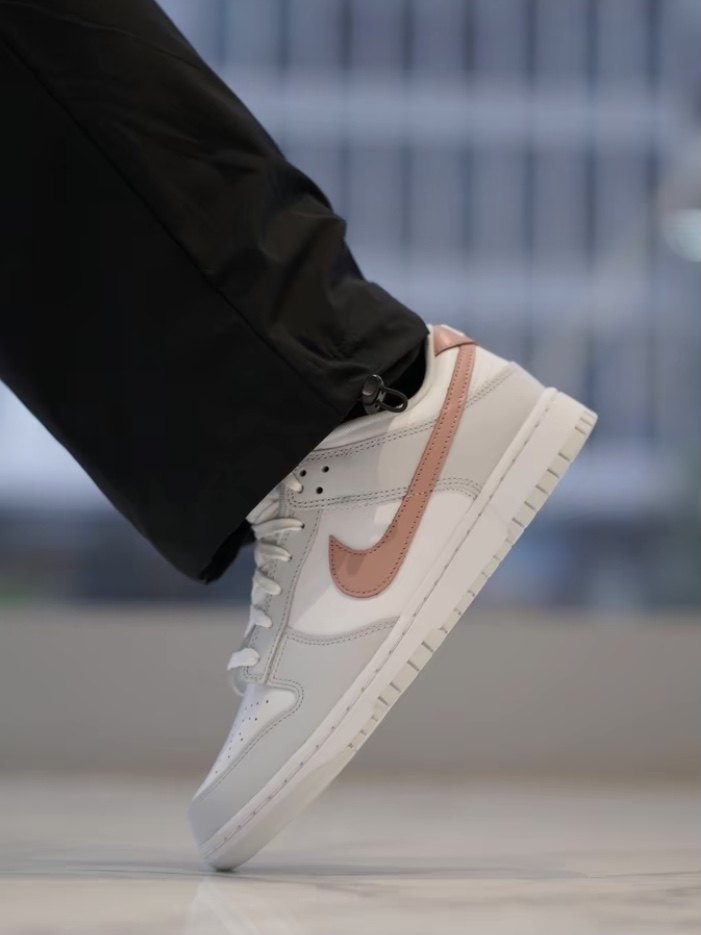 The white appearance is matched with a pink Swoosh and heel, which is quite attractive.