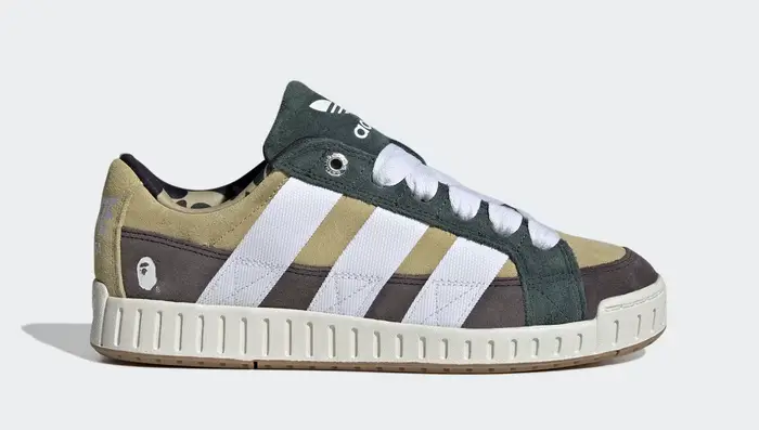 As part of Bape and Adidas' ongoing partnership, the duo is debuting a new sneaker this Saturday dubbed the "Adidas N Bape." According to the brands, this silhouette is inspired by the 2000s aesthetic, featuring a chunky upper, and including matching panels and shoelaces. There will be two colorways up for grabs this weekend, including the "Sand" pair pictured above.