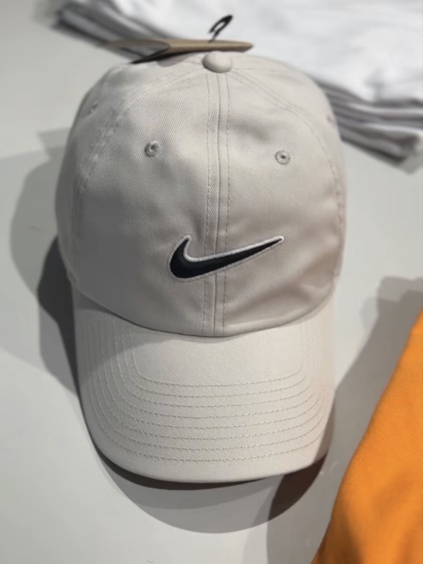 The hat is mainly off-white, with a black embroidered logo on the front and white trim. The overall look is very simple and clean. The buckle can be adjusted freely at the back for easy wearing.